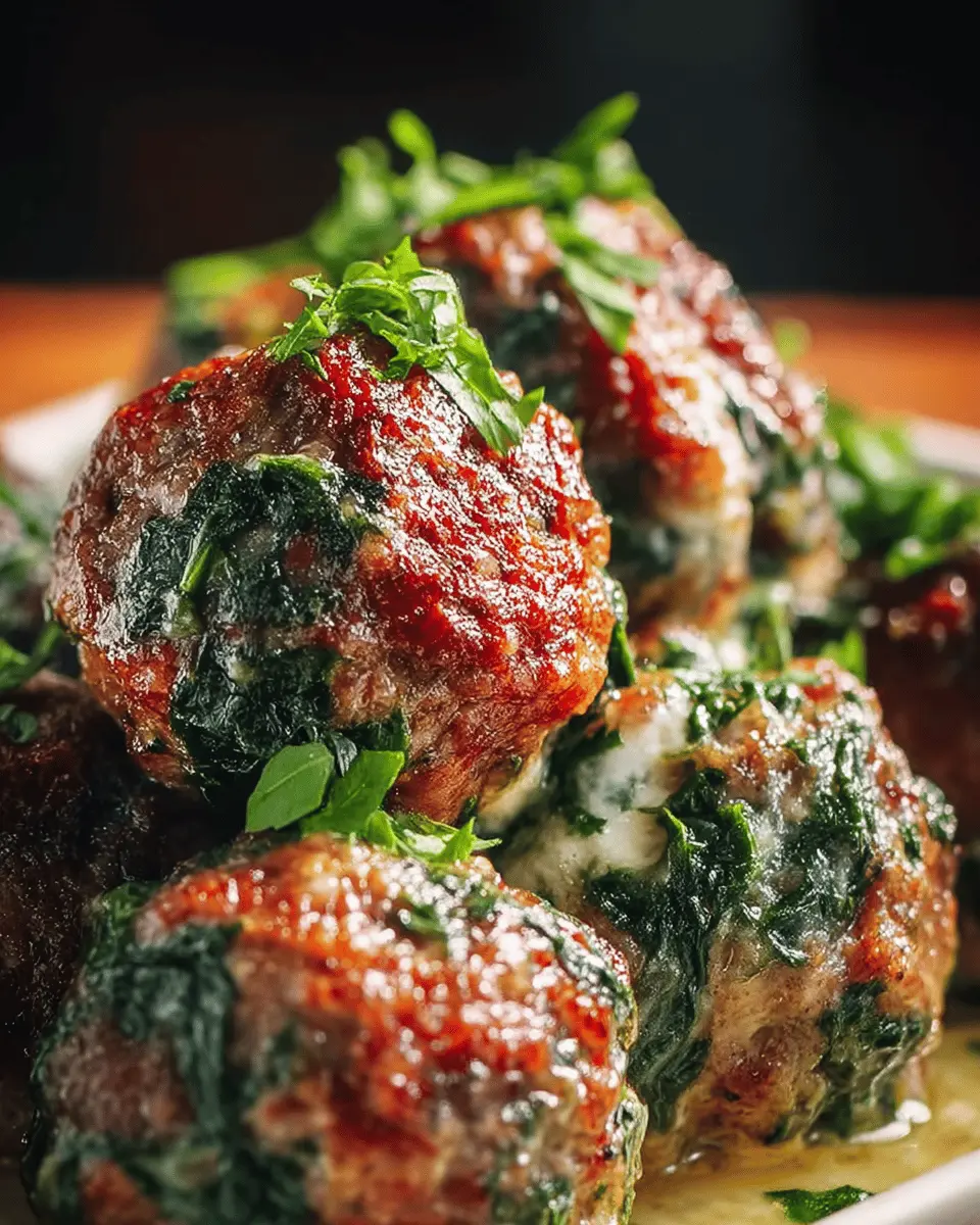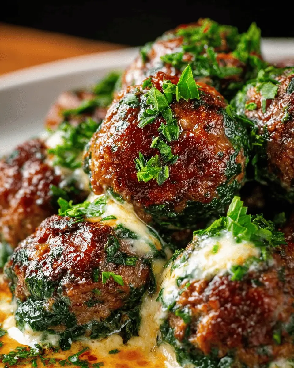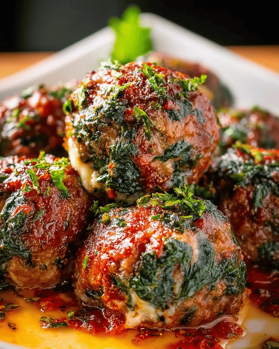 Boulettes de Bœuf à l’Ail et aux Épinards, Farcies à la Mozzarella