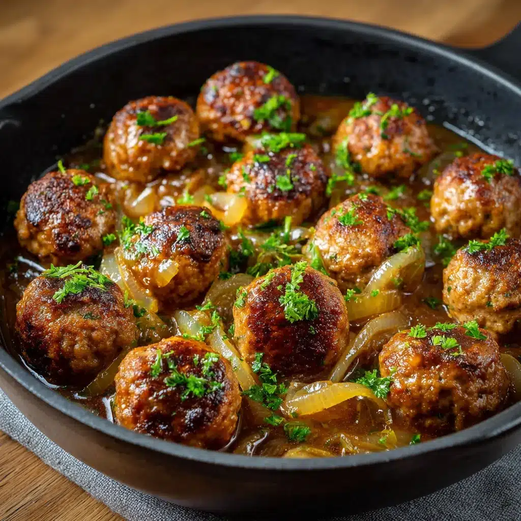 Découvrez cette délicieuse recette de boulettes de viande accompagnées d’une sauce savoureuse aux oignons, parfaite pour un repas réconfortant en famille.