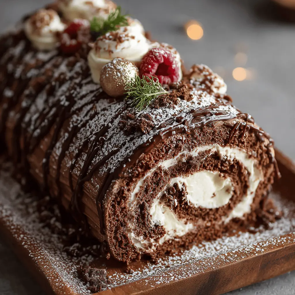 Pour rendre votre Bûche de Noël Facile Nutella encore plus appétissante, pensez à une présentation créative ! Utilisez un plat en bois rustique pour une touche d’authenticité. Décorez votre bûche avec des zestes de citron pour une note de fraîcheur, quelques baies rouges pour la couleur, et une légère saupoudrée de cacao. Un effet neige ? Saupoudrez un peu de sucre glace sur le dessus pour un look hivernal. N’oubliez pas d’ajouter une petite carte avec un message chaleureux ; cela fait toujours plaisir aux invités.