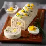 Cette bûche salée aux œufs mimosa et au thon est un plat savoureux et simple à réaliser, parfait pour vos apéritifs ou buffets.