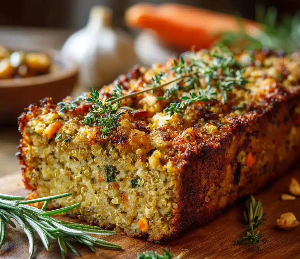 Un cake salé sain et moelleux à base de quinoa, pois chiches et herbes de Provence. Parfait pour un repas équilibré ou à emporter.