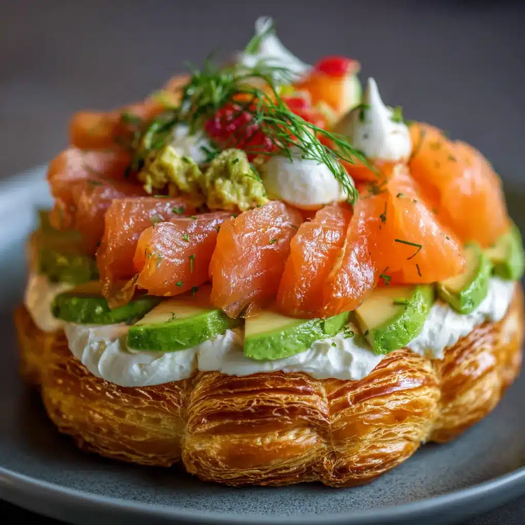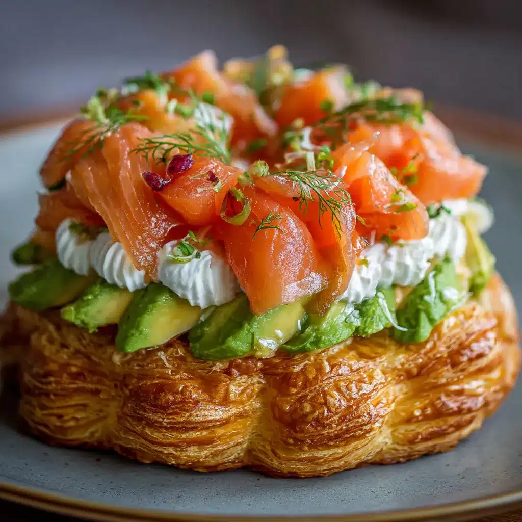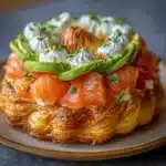 La Couronne Feuilletée au Saumon Fumé est non seulement une explosion de saveurs, mais aussi un plat qui impressionne visuellement. Facile à préparer, elle est parfaite pour des occasions spéciales ou simplement pour se faire plaisir en week-end. Imaginez la présentation : une belle couronne dorée, garnie de saumon, d’avocat crémeux et de fromage frais, qui ne manquera pas de faire saliver vos invités.