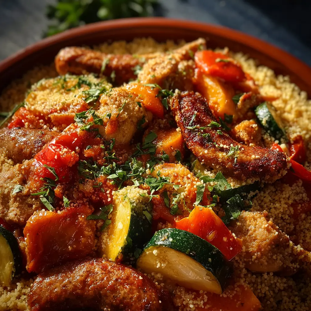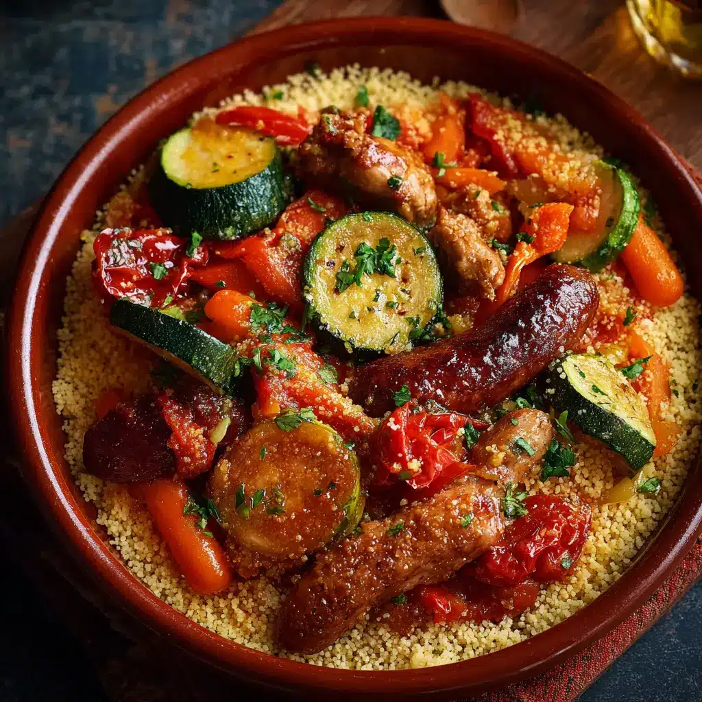 Couscous au poulet, merguez et légumes : Recette savoureuse et facile