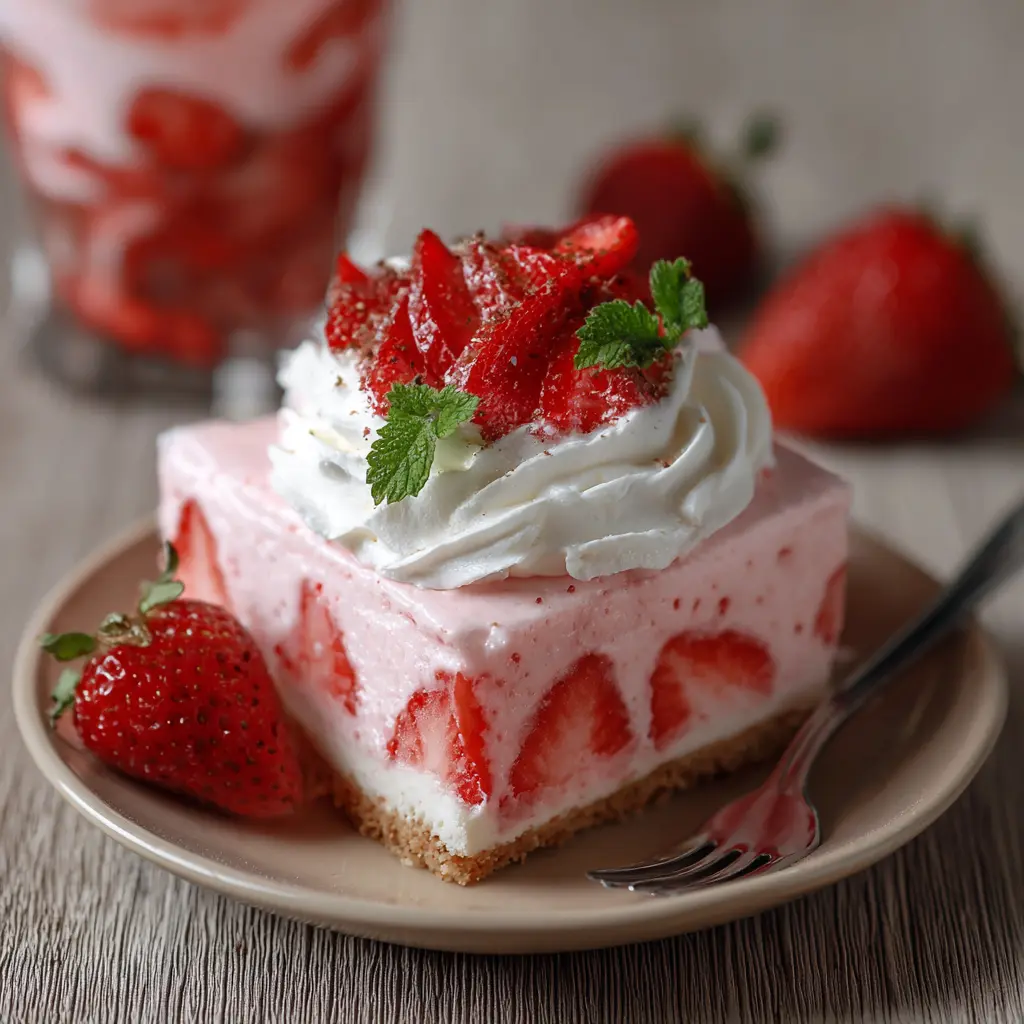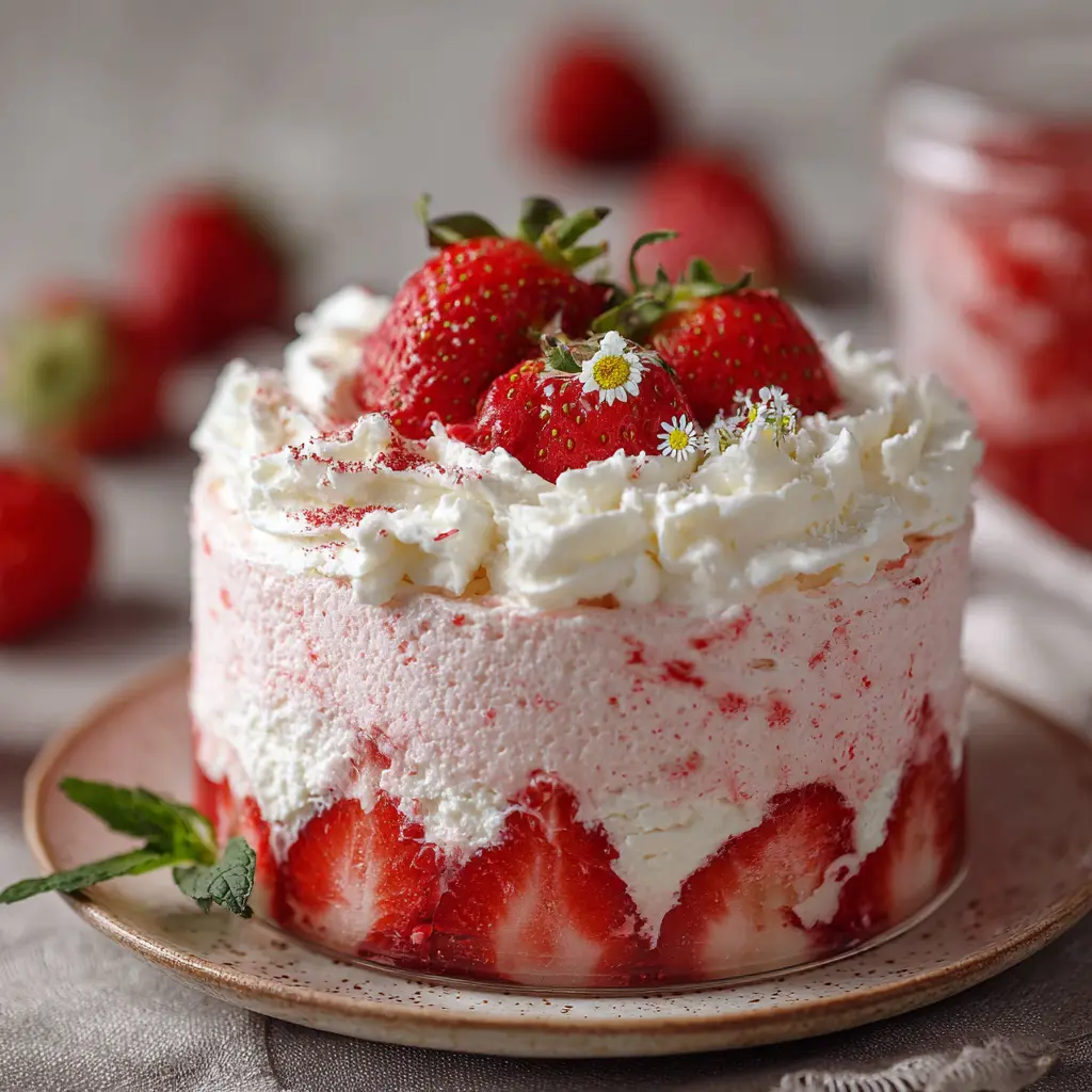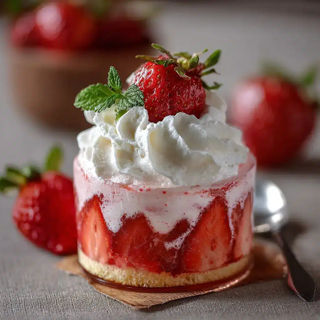 - Pour une touche finale, ajoutez quelques quartiers de fraises fraîches sur le dessus, ainsi que des feuilles de menthe pour une note de fraîcheur.
