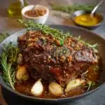 Cette épaule d’agneau confite au four est un plat réconfortant, parfait pour les occasions spéciales ou un dîner en famille. La viande devient tendre et savoureuse grâce à une cuisson lente.