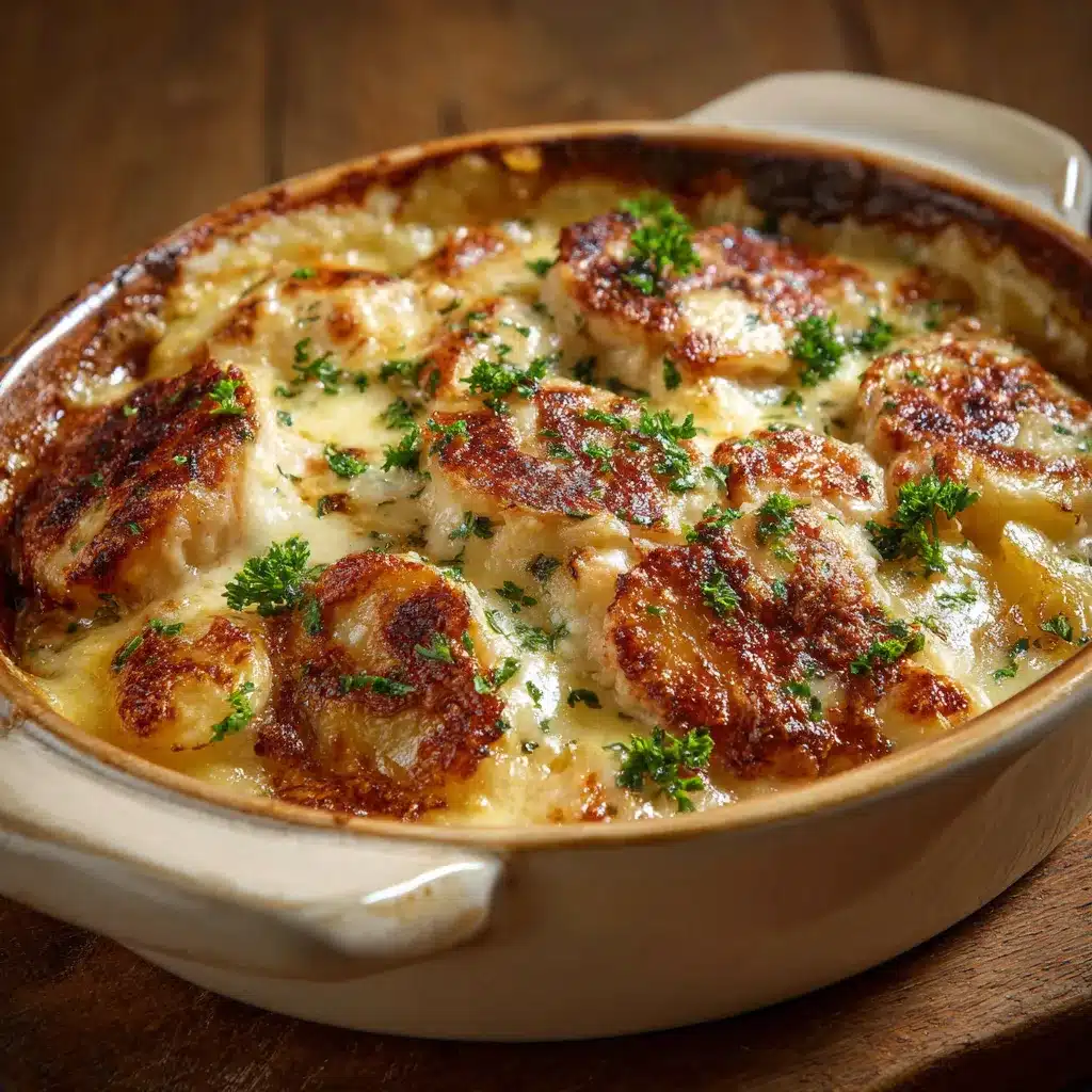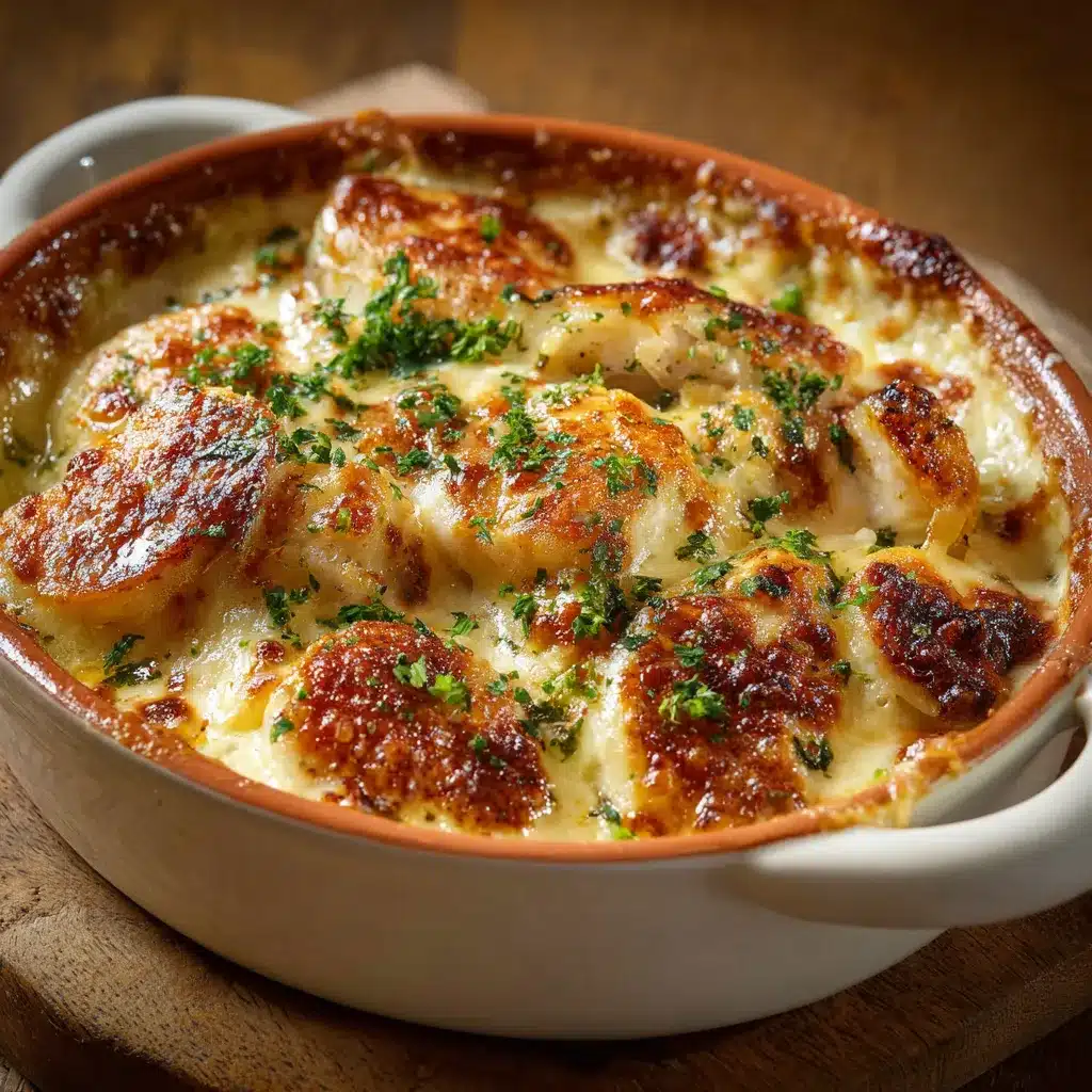 Présentez votre escalope savoyarde gratinée au reblochon dans un plat creux en terre cuite. Les bords dorés et croustillants du fromage ajoutent une allure délicieuse. Garnissez chaque portion d’un brin de persil frais pour une touche de couleur et de saveur.