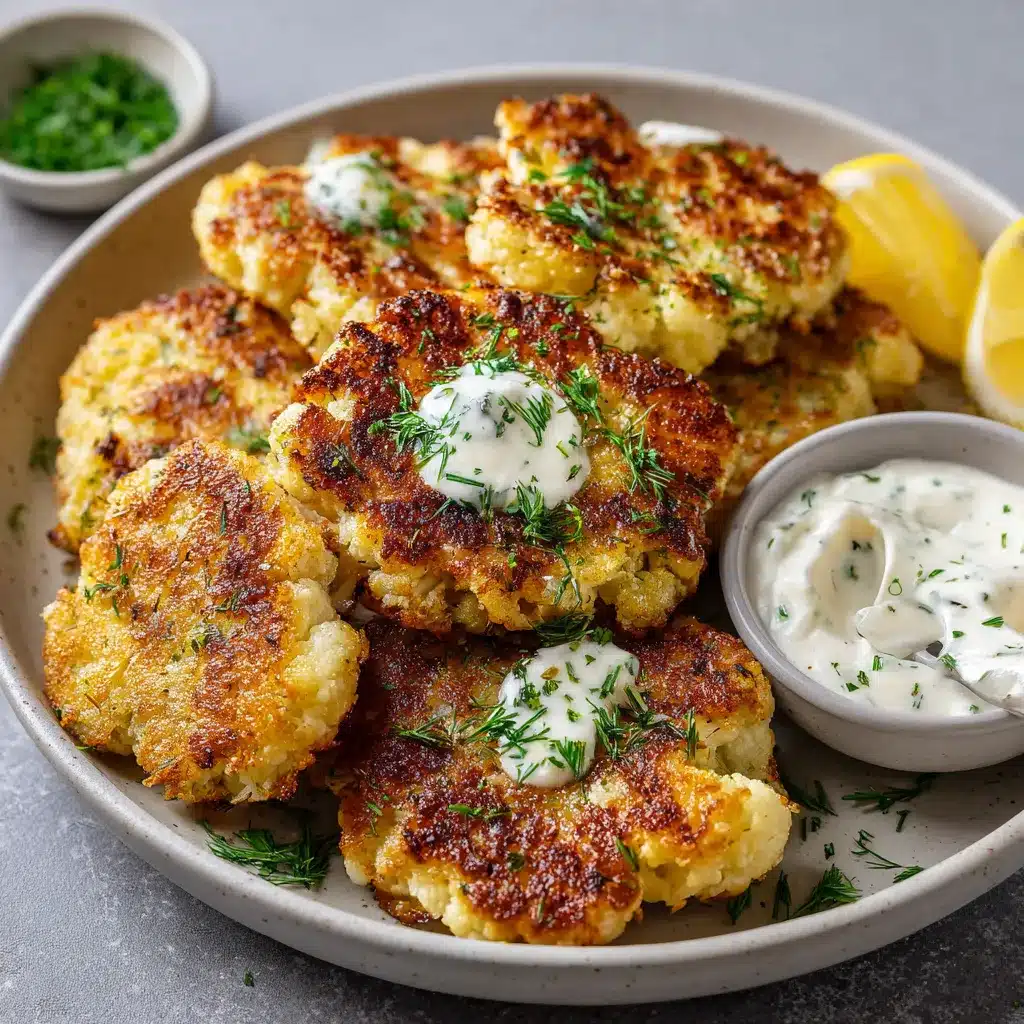Galettes de chou-fleur au parmesan : délicieuses avec sauce au yaourt citronné