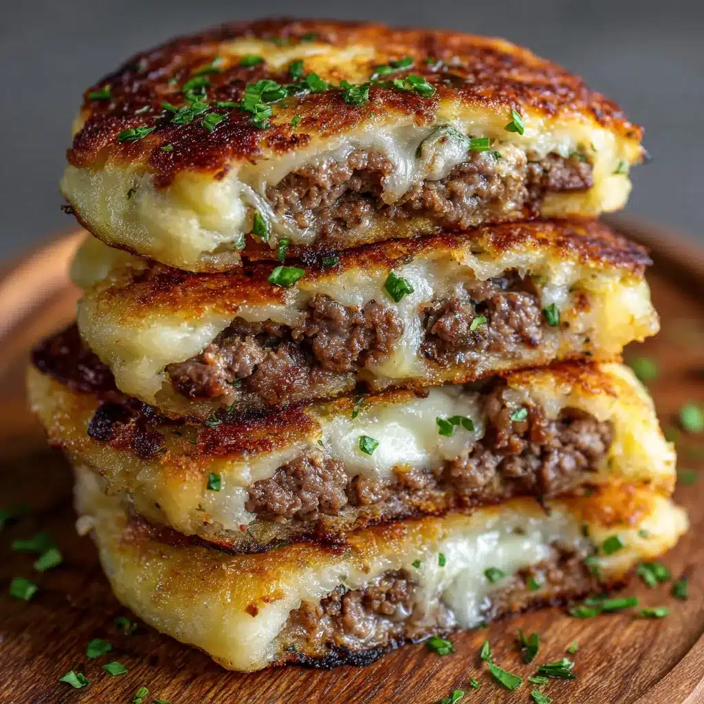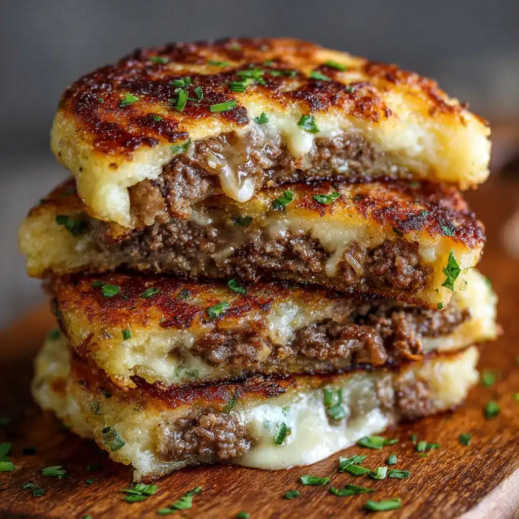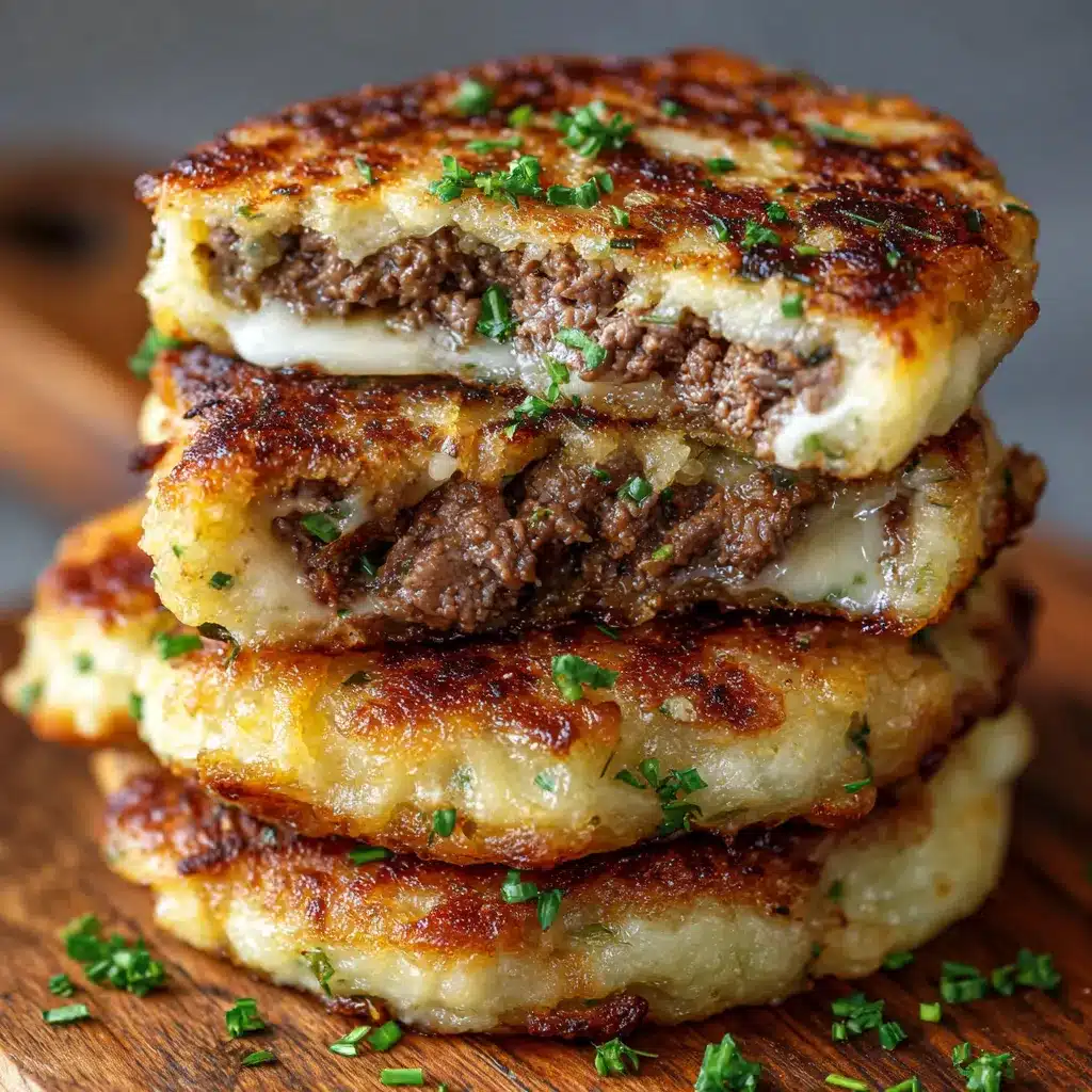 Découvrez ces délicieuses galettes de pommes de terre farcies au bœuf et fromage fondant, parfaites pour un repas réconfortant.
