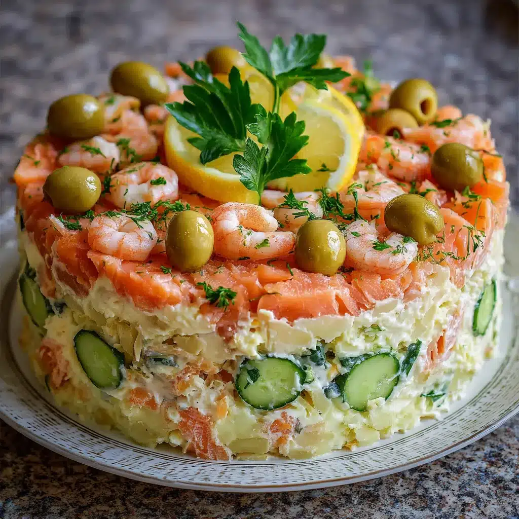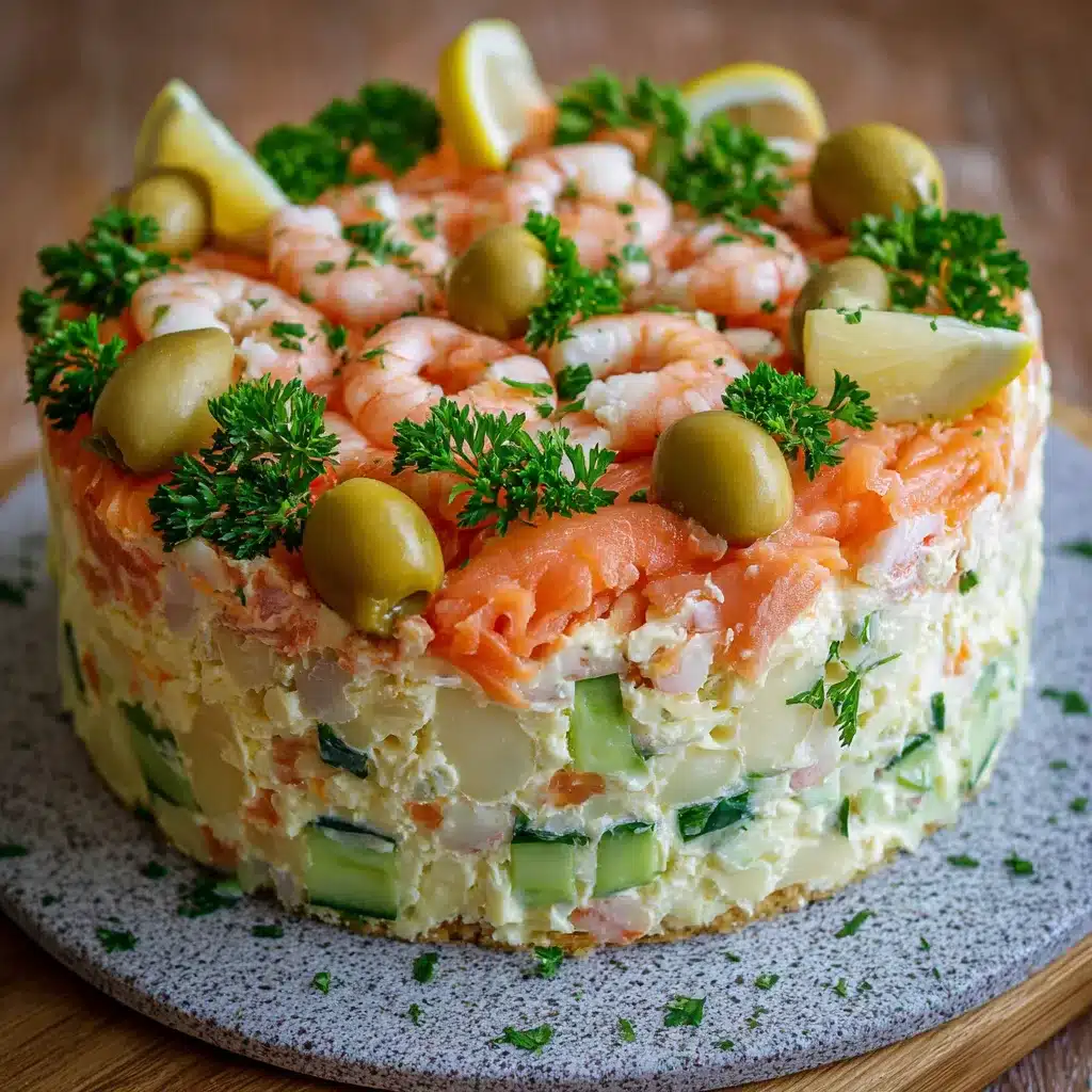 Introduction au Gâteau de Salade aux Crevettes et Saumon Fumé