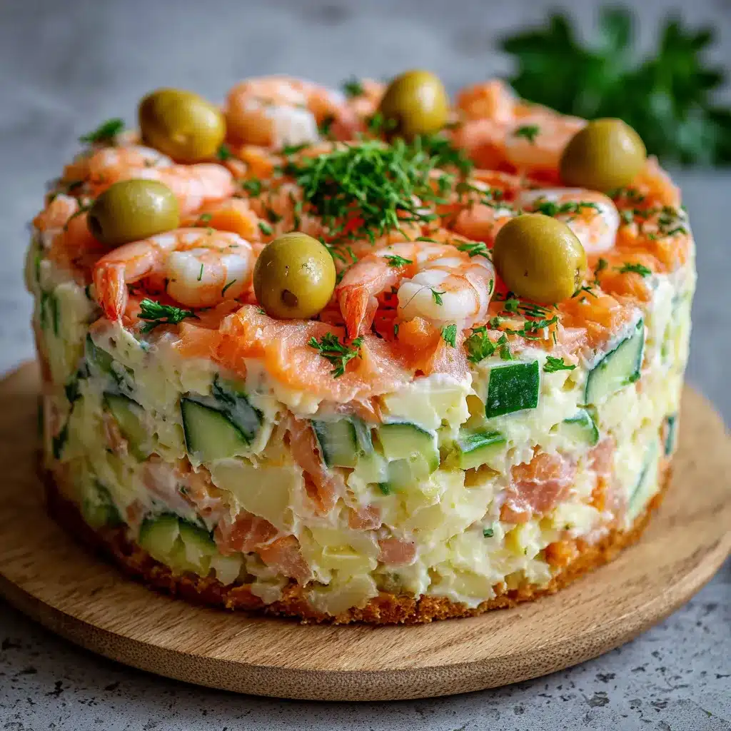 Gâteau de Salade aux Crevettes et Saumon Fumé: Recette Facile et Savoureuse
