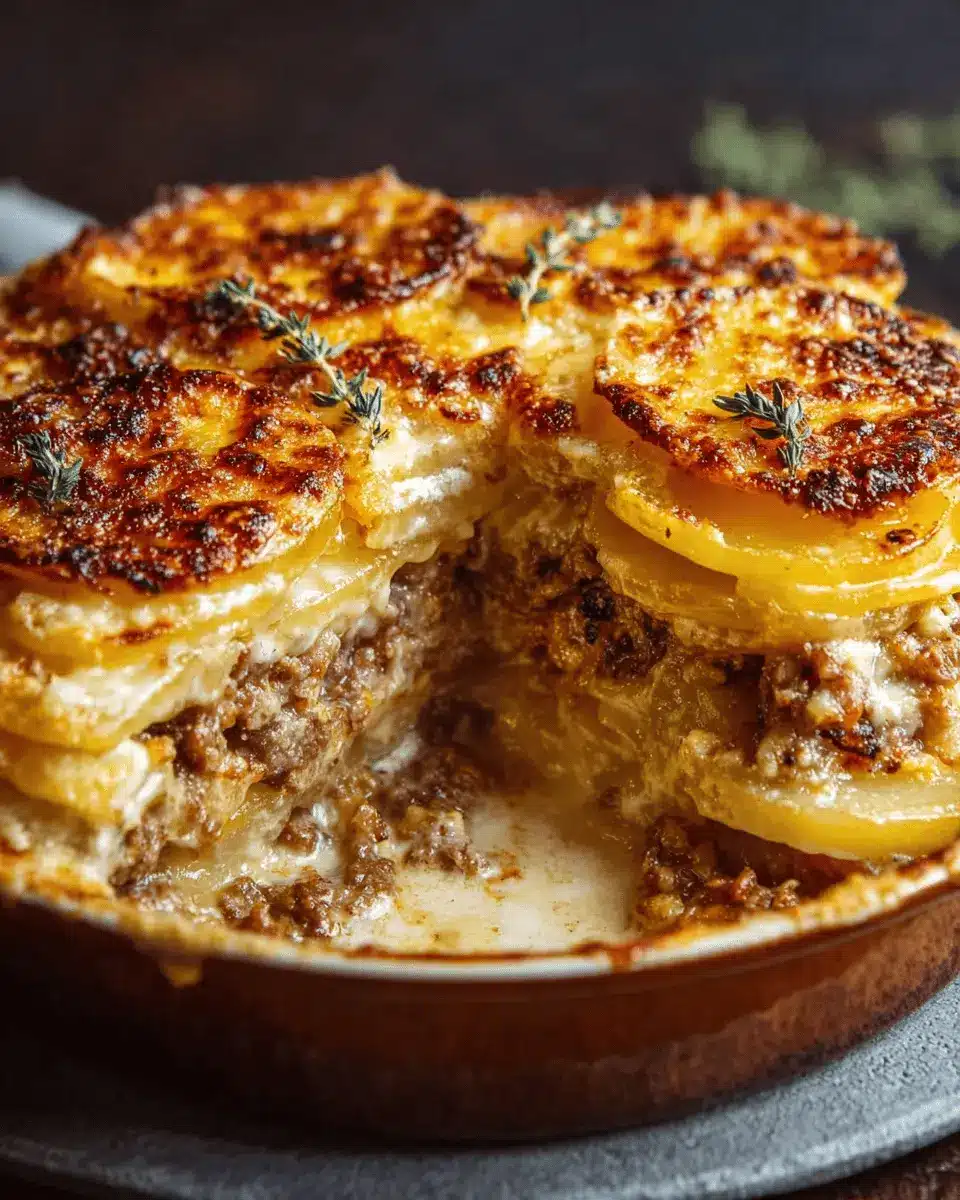 Un délicieux gratin de viande et de pommes de terre, excellent pour un repas réconfortant.