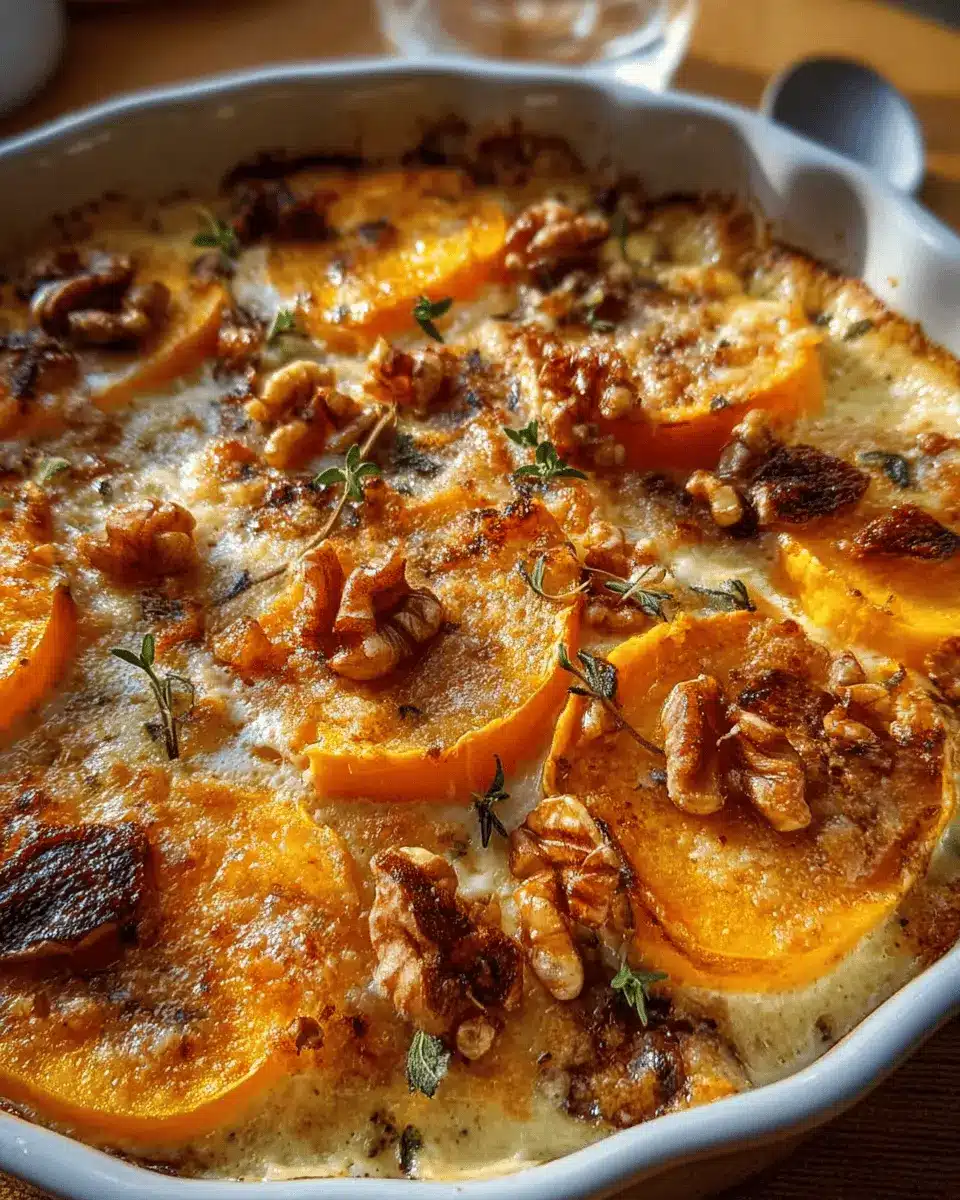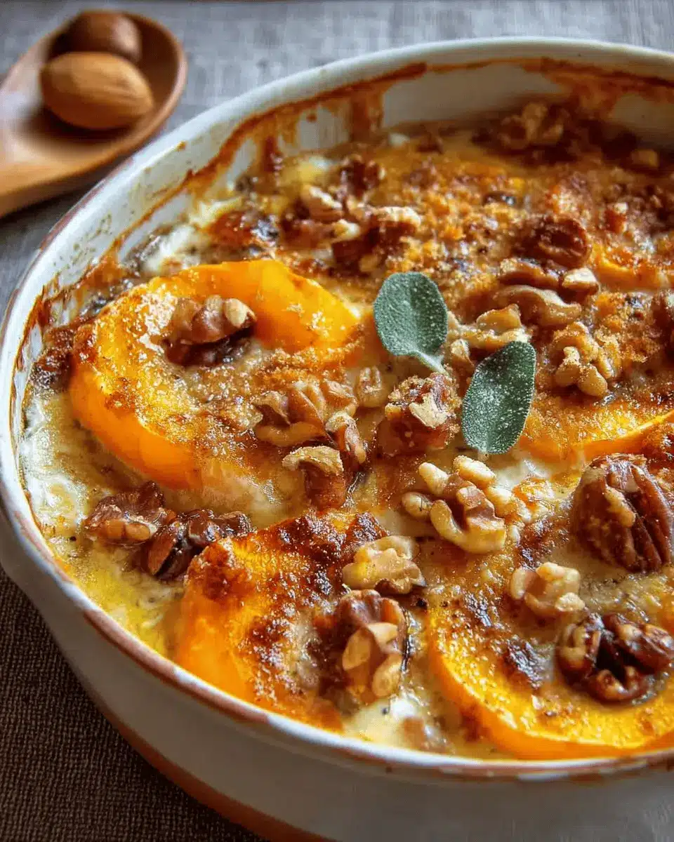 Gratin d’Automne : Courge, Châtaignes & Croquant de Noix Savoureux