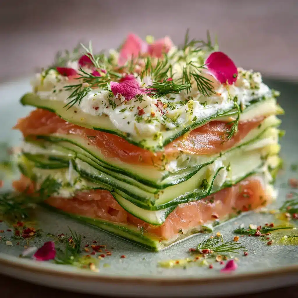 Avec des couches de fines lamelles de concombre, du saumon tendre, et une crème ricotta parfumée au citron et aux herbes, ce plat va vite devenir un incontournable de votre cuisine estivale. Que vous soyez débutant en cuisine ou simplement à la recherche de fraîcheur et d’originalité, vous êtes au bon endroit.