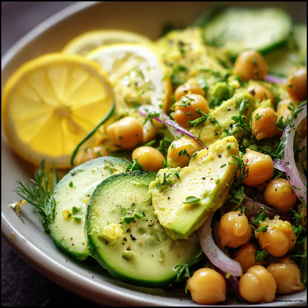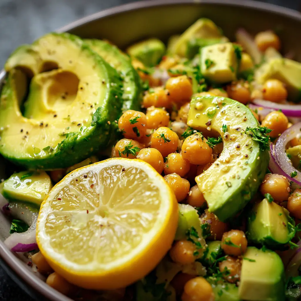 Découvrez cette délicieuse salade de pois chiches, avocat et citron, parfaite pour un repas sain et réconfortant.