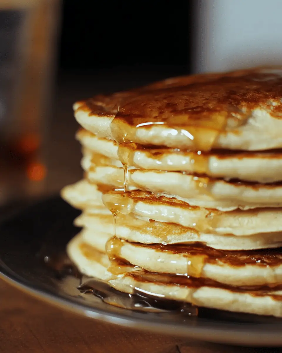 - Vous pouvez servir les pancakes avec du sirop d’érable ou des fruits frais.