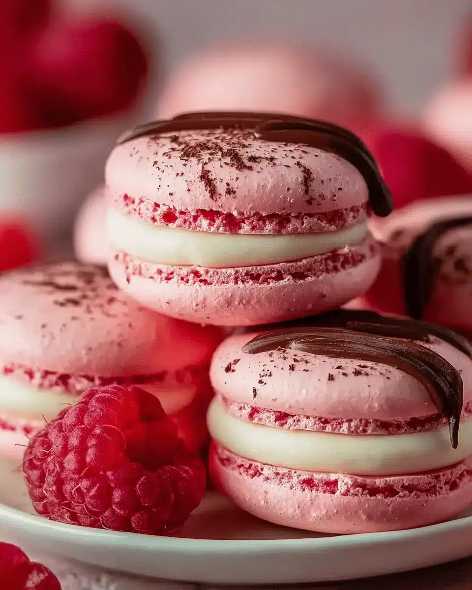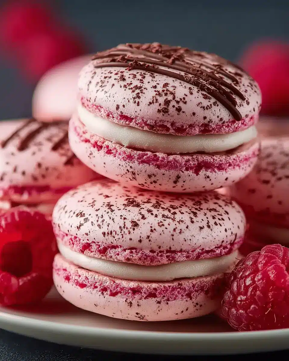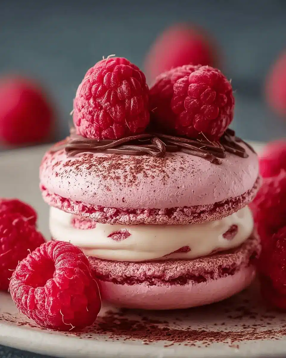 Ces macarons à la framboise avec ganache au chocolat blanc sont un délice irrésistible, parfaits pour toutes les occasions.