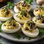 Cette recette d’œufs farcis aux champignons et oignons est un vrai délice, parfaite pour un apéritif ou un plat principal léger.