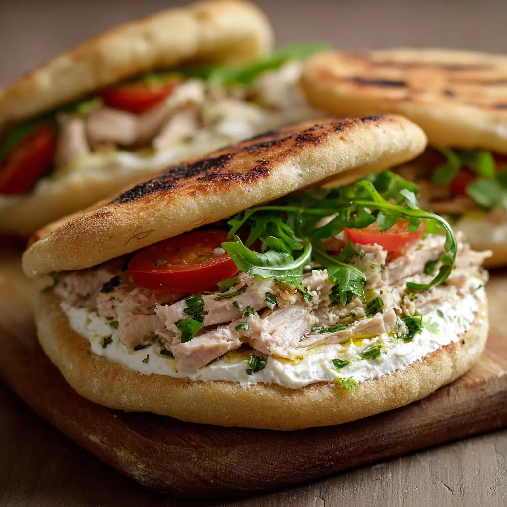 Si vous êtes à la recherche d’un repas plus consistant, essayez les Pains Pitas à la Crème de Thon avec du poulet. Que ce soit en dés, rôti ou même en chicken ham, le poulet se marie parfaitement avec la crème de thon. Ajoutez quelques tranches de tomate et de la laitue croquante pour une touche fraîche.