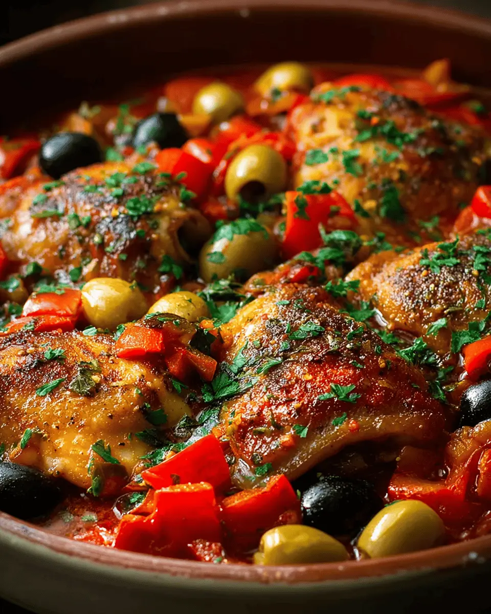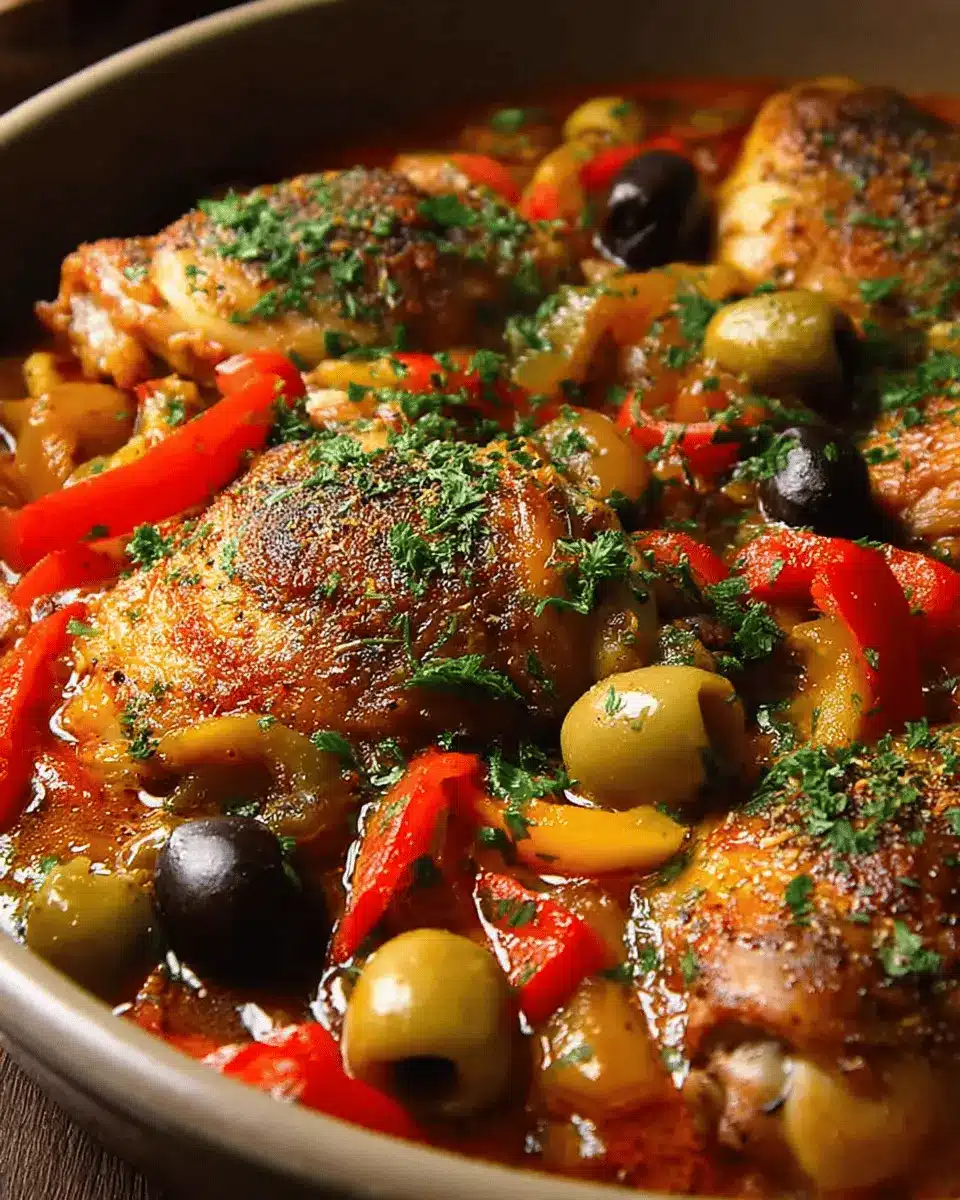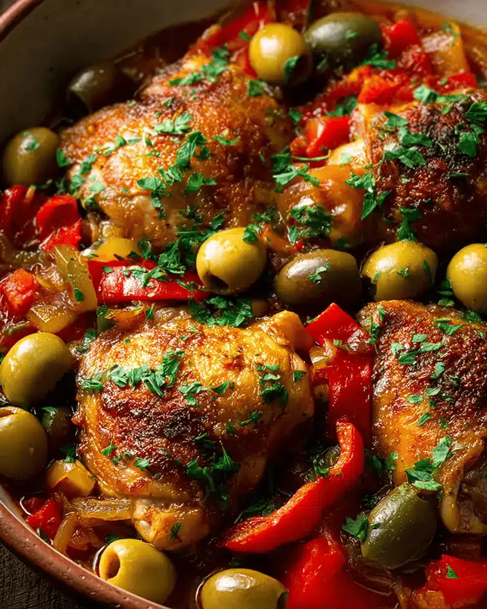 Pourquoi essayer le poulet aux olives et poivrons ?
