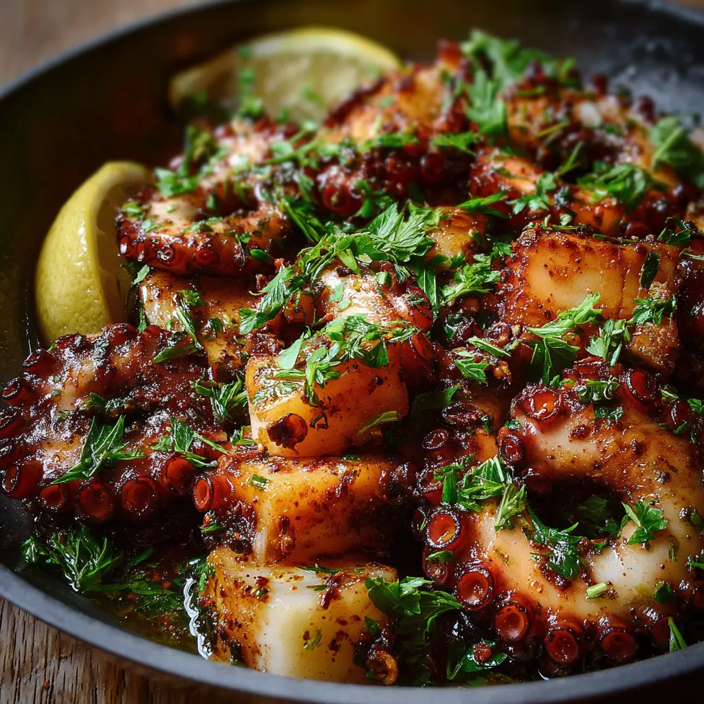 Variations du Poulpe Sauté à l’Ail et aux Épices