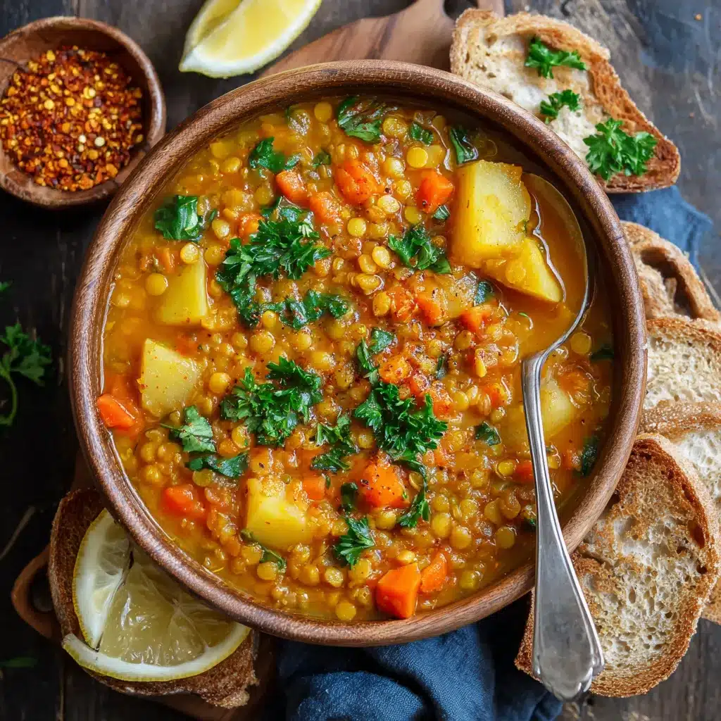 Ragoût de Lentilles : recette réconfortante de Carottes et Pommes de Terre au Pain Grillé
