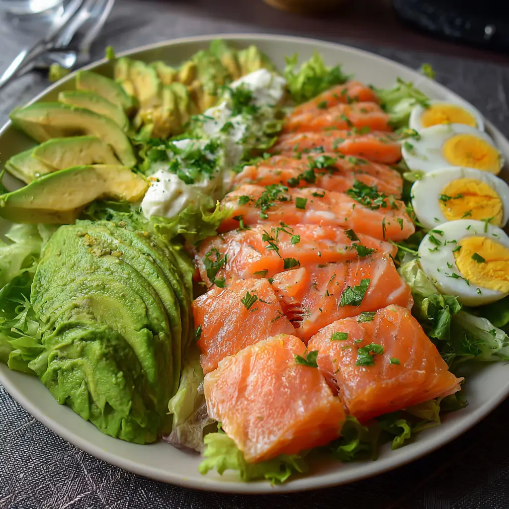 Découvrez cette délicieuse salade de saumon et avocat, parfaite pour un repas léger et frais.