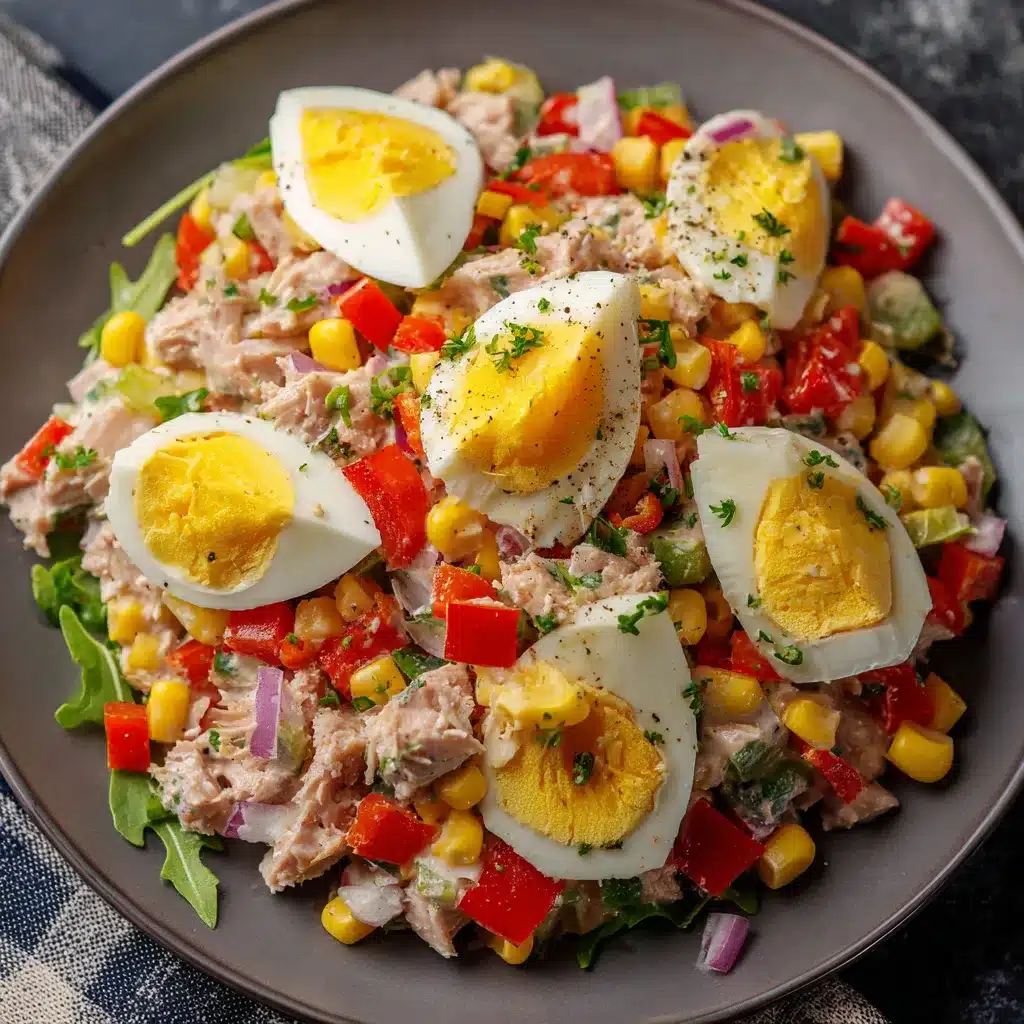 Cette salade de thon, poivron, maïs et œuf est parfaite pour un repas léger et frais. Facile à préparer, elle ravira vos repas d’été.