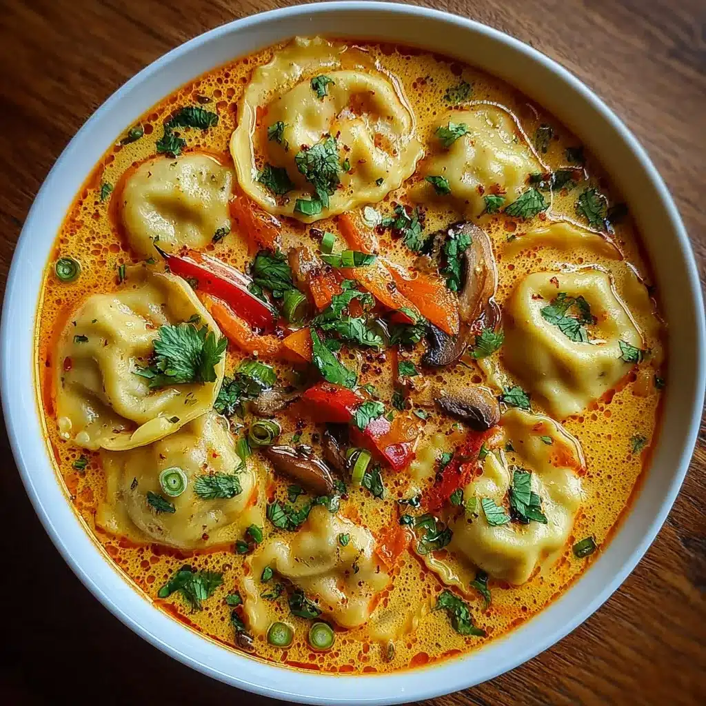 Soupe thaïlandaise : Raviolis au Curry & Lait de Coco réconfortants