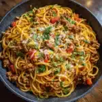 Si vous aimez le piment, essayez les spaghettis façon tacos épicés. Ajoutez un peu de chaleur pour éveiller vos papilles !