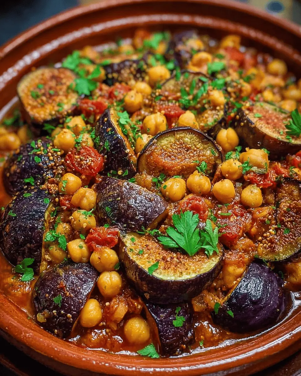 Découvrez cette délicieuse recette de tajine de figues avec des pois chiches et des aubergines, parfaite pour un repas réconfortant.