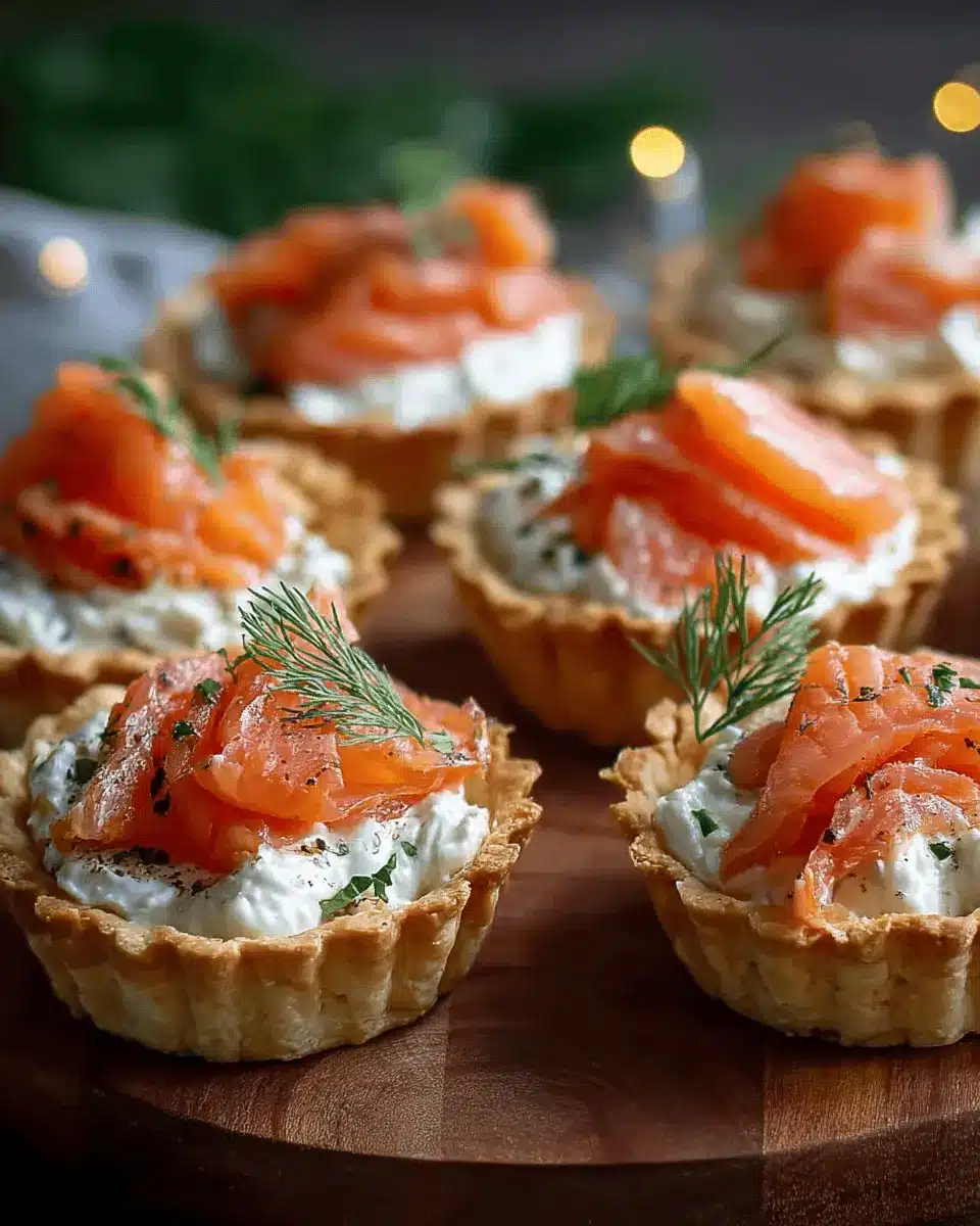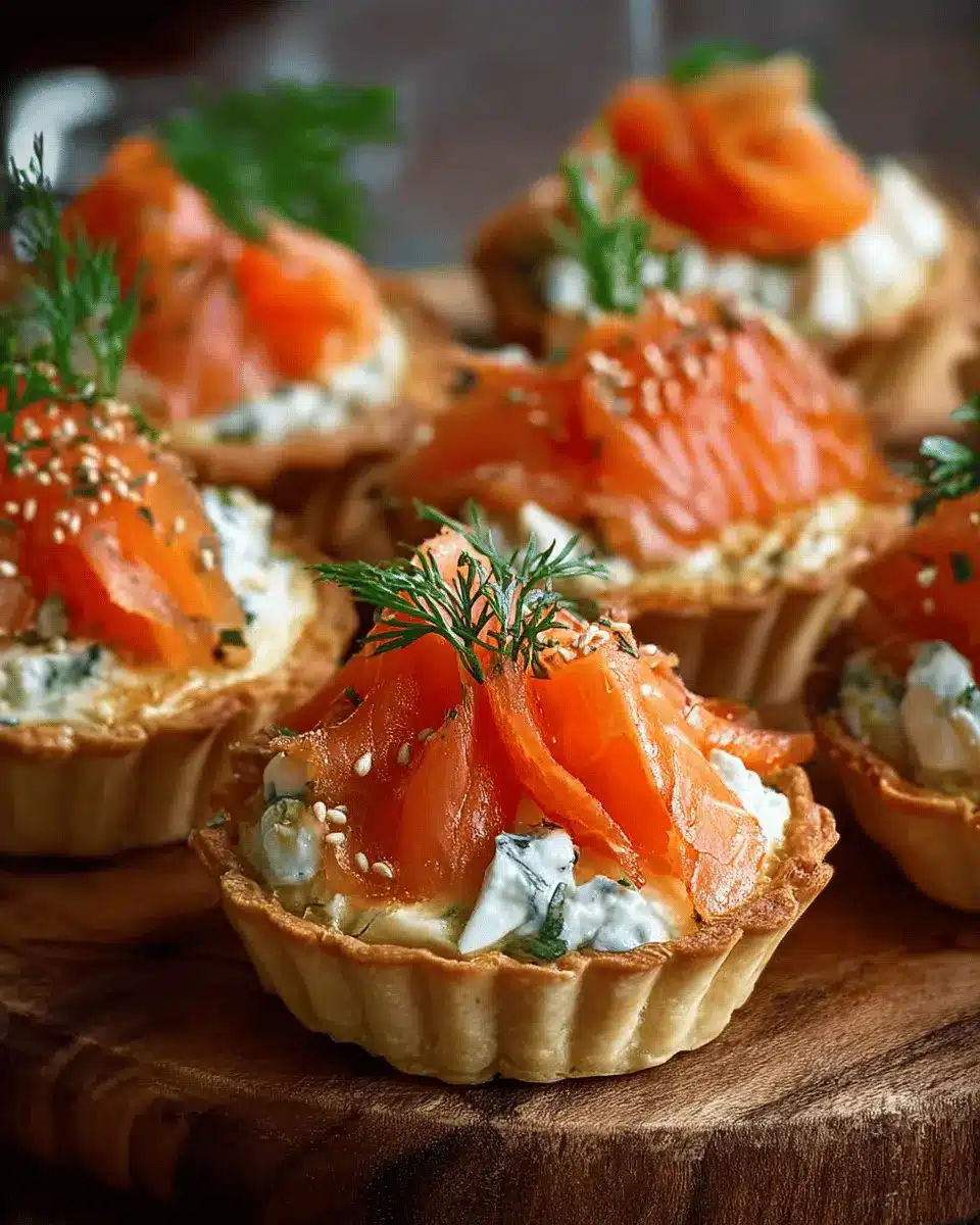 - Plateau coloré : Dressez vos tartelettes sur un plateau en bois ou en ardoise, agrémenté de tranches de citron, d’aneth frais et de câpres. Cela apporte une belle touche de couleur et de fraîcheur.