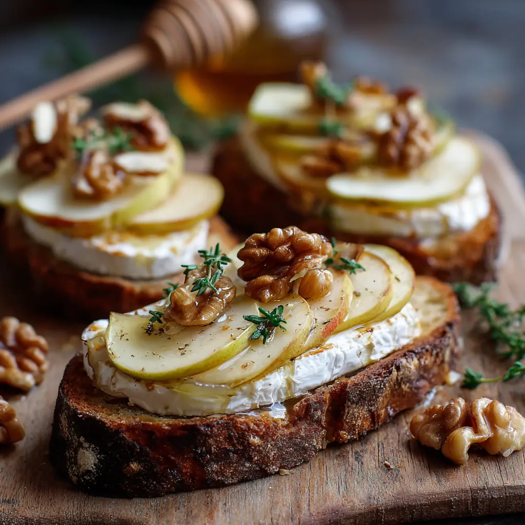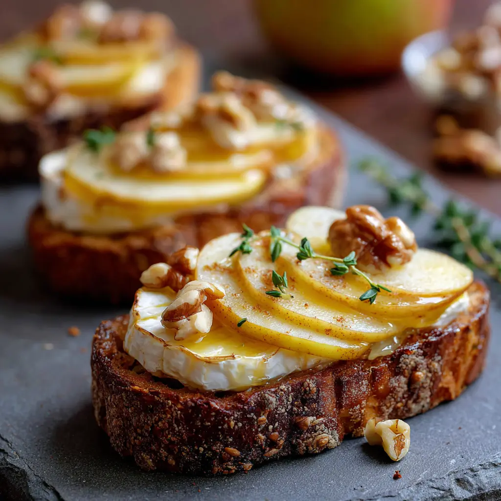 Tartines de camembert rôti : savoureuses aux pommes et noix