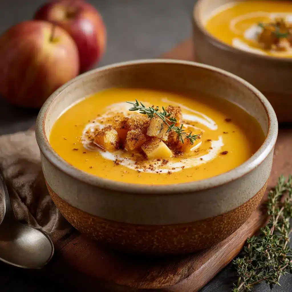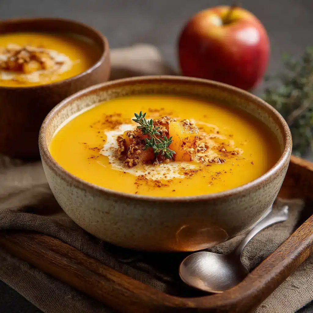 Régalez-vous avec ce velouté pomme-potimarron réconfortant. Bon appétit !